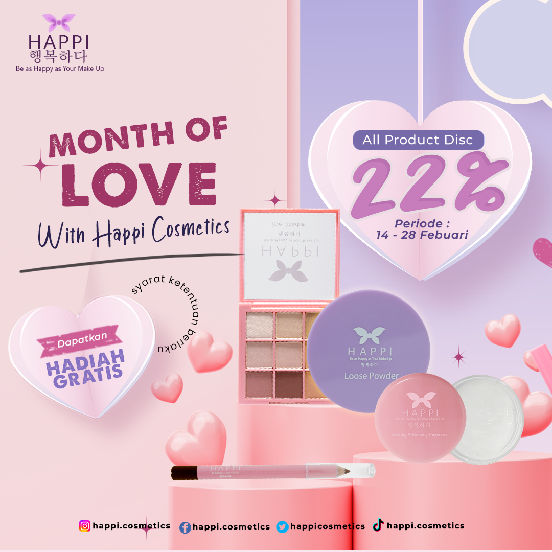 HAPPI Cosmetics Special Sale Month Of Love ????Berbagi kebahagiaan di bulan kasih sayang dengan diskon UP TO 22% untuk all produk HAPPI Cosmetics ????Ditambah l .....